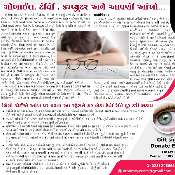 મોબાઈલ, ટીવી , કમ્પ્યુટર અને આપણી આંખો...