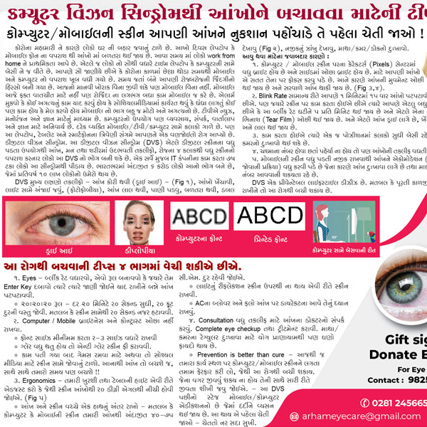 કમ્યૂટર વિઝન સિન્ડ્રોમથી આંખોને બચાવવા માટેની ટીપ્સ