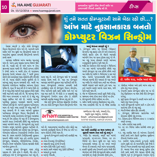 કમ્યૂટર વિઝન સિન્ડ્રોમથી આંખોને બચાવવા માટેની ટીપ્સ